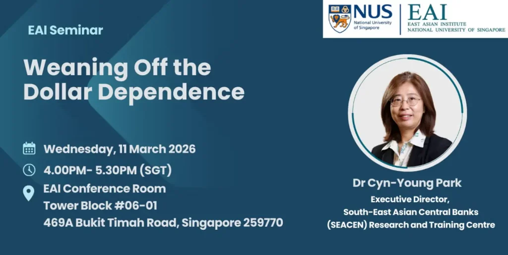 Dr. Cyn-Young Park, Executive Director of the SEACEN Centre, delivered an insightful talk in the seminar on “Weaning Off Dollar Dependence” at the East Asian Institute, National University of Singapore on March 11, 2026.